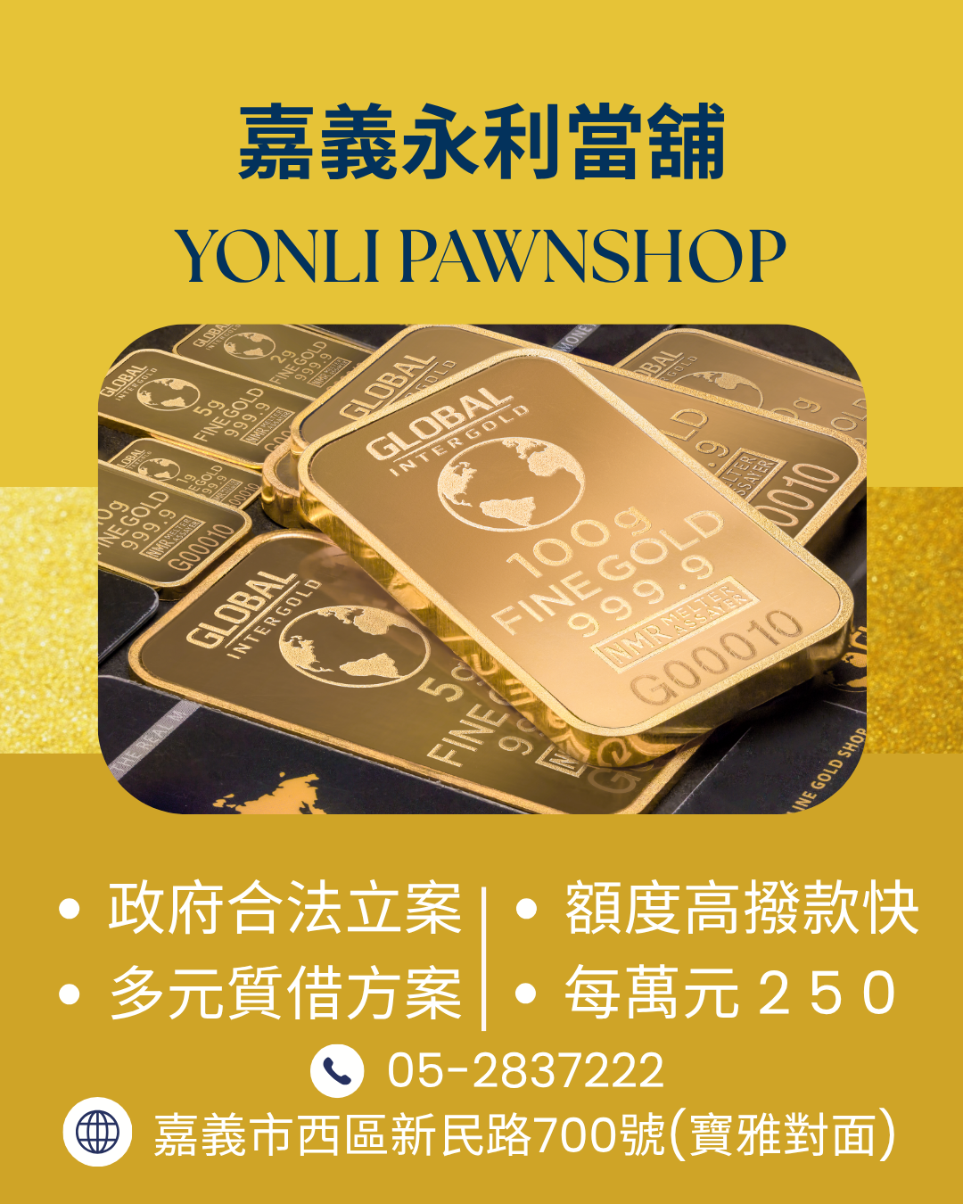 永利嘉義當舖,讓您借得安心、還得輕鬆,是您值得信賴的在地資金週轉好夥伴!